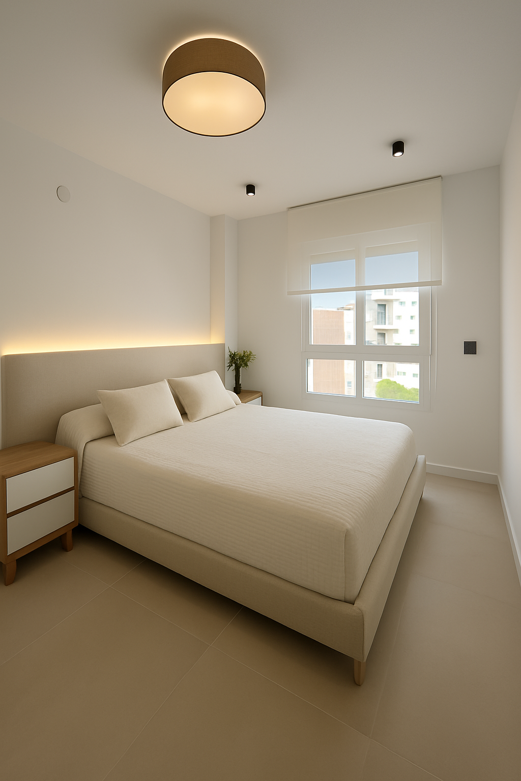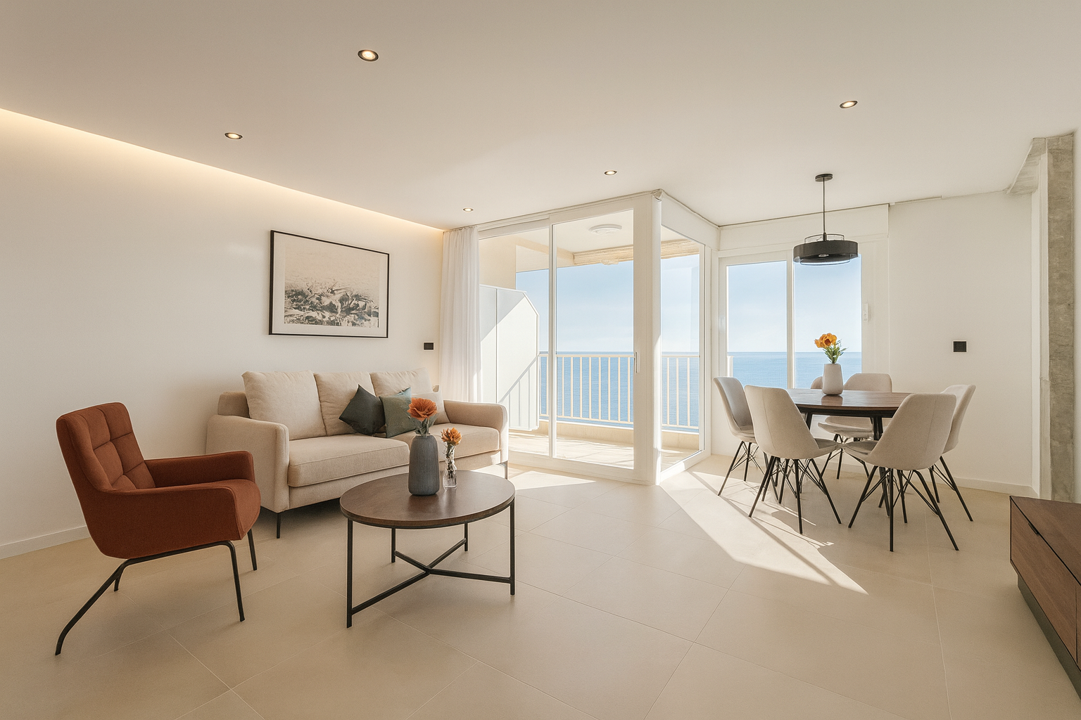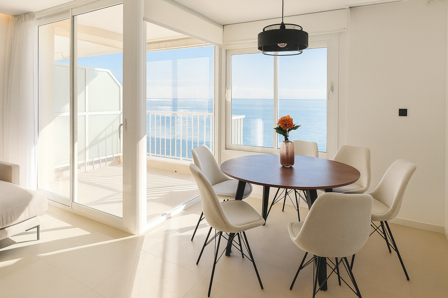 Un proyecto que redefine la vida frente al mar a través de una reforma integral contemporánea. En este ático de la Playa de Los Locos abrimos por completo la vivienda hacia el Mediterráneo, creando un espacio diáfano donde cocina, comedor y salón se integran en torno a la luz natural. Los tonos arena, las líneas puras y la iluminación cálida aportan serenidad, mientras que los dormitorios y baños mantienen una estética minimalista y equilibrada. El resultado es un hogar luminoso, moderno y acogedor, diseñado para disfrutar del mar los 365 días del año.