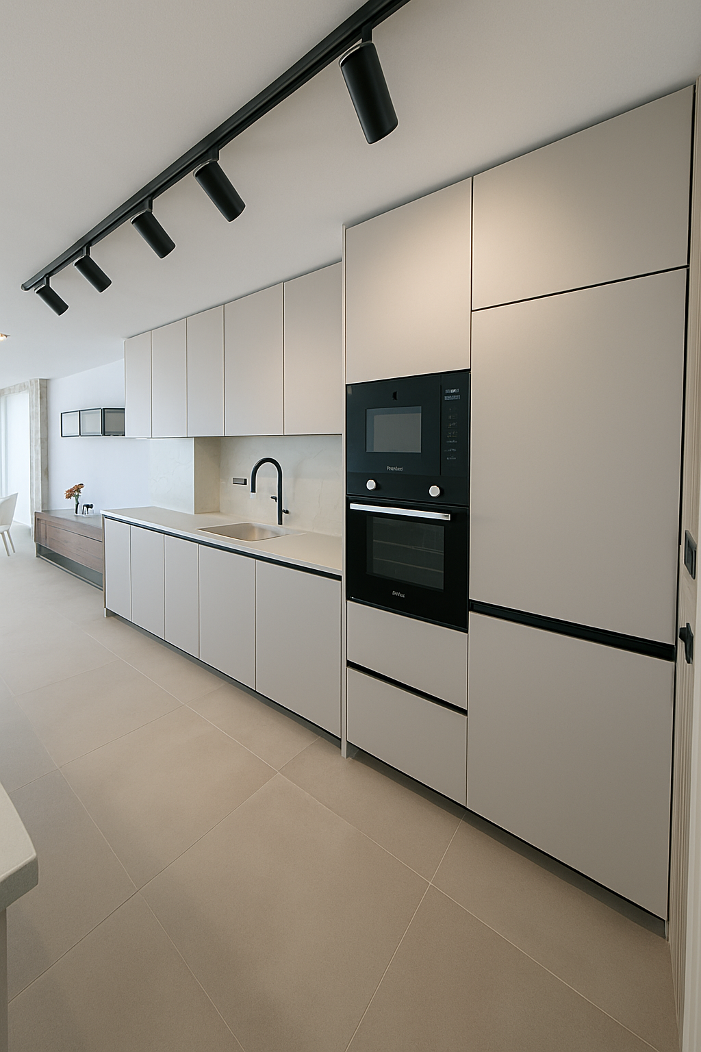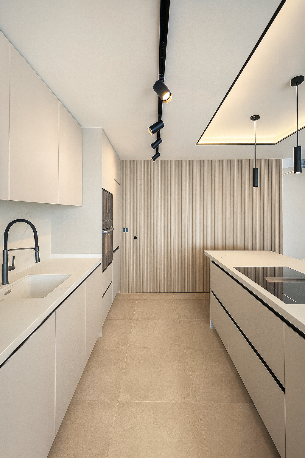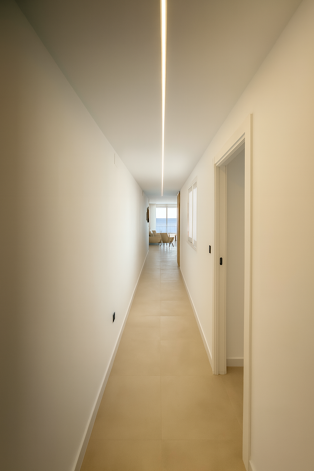 Un proyecto que redefine la vida frente al mar a través de una reforma integral contemporánea. En este ático de la Playa de Los Locos abrimos por completo la vivienda hacia el Mediterráneo, creando un espacio diáfano donde cocina, comedor y salón se integran en torno a la luz natural. Los tonos arena, las líneas puras y la iluminación cálida aportan serenidad, mientras que los dormitorios y baños mantienen una estética minimalista y equilibrada. El resultado es un hogar luminoso, moderno y acogedor, diseñado para disfrutar del mar los 365 días del año.